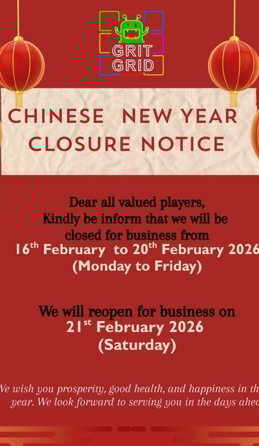 Chinese new year closure notice \ Grit Grid closed 16th - 20th Feb 2026, wishing all a happy chinese new year